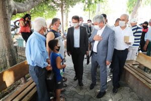 01 Ekim 2020 Perşembe günü saat 11.00’de ülkemizde artan koronavirüs vakalarının önüne geçmek, halkı bilinçlendirmek ve farkındalık yaratmak için Samandağ ilçemizde gerçekleştirilen denetimlerde Vali Doğan, esnaf ve vatandaşlarımıza maske, mesafe ve hijyen kurallarına uyulması yönünde uyarılarda bulundu.